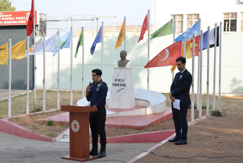 Türkiye Cumhuriyeti’nin Kurucusu Gazi Mustafa Kemal ATATÜRK; ebediyete irtihalinin 87. yılında Adana E Tipi Kapalı Ceza İnfaz Kurumu önündeki büstte düzenlenen programa Adana F Tipi Yüksek Güvenlikli Ceza İnfaz Kurumu Yöneticileri ile Kürkçüler Kampüsü Personelinin katılımıyla 09.05-09.07 saatleri arası siren sesi daha sonra saygı duruşu ve istiklal marşıyla anma programımız başlamıştır. Kurum öğretmenlerimiz ve eğitim öğretim servisi tarafından organize edilen programda; Gazi Mustafa Kemal Atatürk’ün hayatı ve mücadele yıllarını, Mustafa Kemal ATATÜRK’ün ileri görüşlülüğünü, güçlü karakterini ve Cumhuriyetin temellerini atarken sergilediği kararlılığı katılımcılara aktarılmıştır. ATATÜRK’ün eğitim ve bilime verdiği önem ile Türk milletine bıraktığı en büyük miras olan Cumhuriyetin korunması yönündeki düşüncelerine değinilerek anma programımız son bulmuştur.