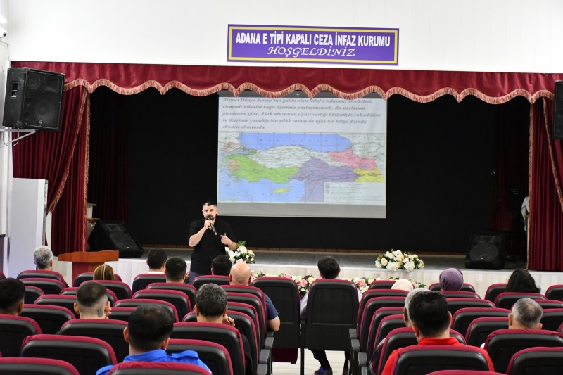 Adana E tipi Kapalı Ceza İnfaz Kurumunda, 23 Nisan Ulusal Egemenlik ve Çocuk Bayramı Günü kapsamında bir program düzenlendi. Saat 14.00’da başlayan etkinliğe Kaşgarlı Mahmut Ortaokulunda görevli Okul Müdürü Gökhan GÖKERK, kurum çalışanları ve hükümlüler katıldı.
