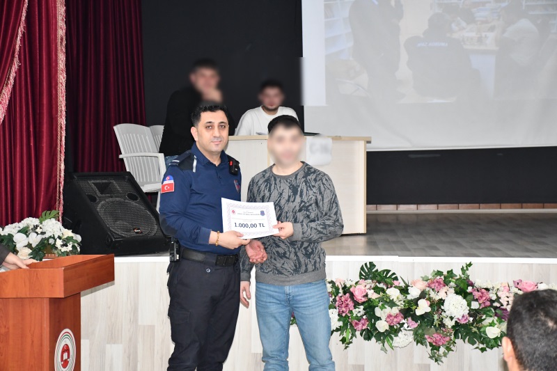 Turnuva sonunda dereceye girerek birinci olan E.Y., ikinci olan V.G ve üçüncü olan H.A. hükümlü/tutuklulara kurum idaresince ödül yönetmeliğine uygun ödüller takdim edilmiştir. Turnuva birincisine ödülü kurum Başöğretmeni Erhan Ç*, turnuva ikincisine İKBM Mehmet D* turnuva üçüncüsüne de Kurum Öğretmeni İbrahim A* tarafından verilmiştir.